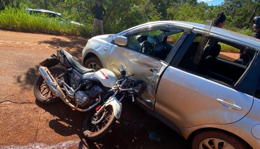 CIUDAD DEL ESTE. Un accidente entre una motocicleta y un automóvil dejó como saldo una persona lesionada. El accidente ocurrió esta tarde, a las 15:30 aproximadamente, sobre la avenida Km 12, lado Acaray, a unos 3.000 metros de la Ruta PY-02, en Ciudad del Este.
