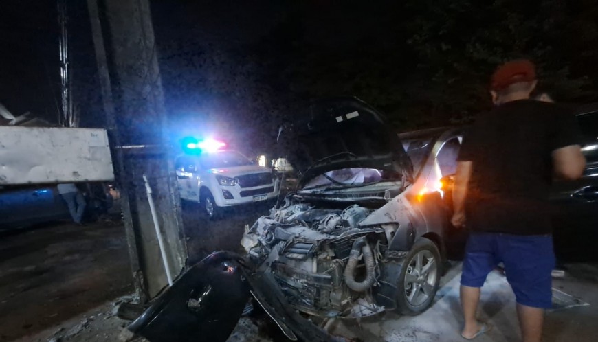 Una conductora alcoholizada chocó con su vehículo contra una columna de la Administración Nacional de Electricidad (ANDE). El vehículo quedó severamente dañado. Sucedió poco después de la medianoche de este lunes, sobre la avenida Julio César Riquelme, km 7 Ciudad Nueva de Ciudad del Este.