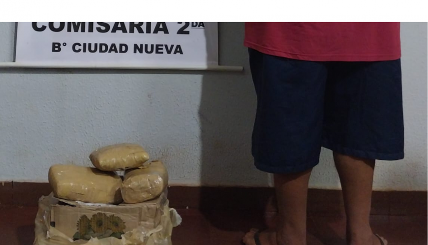 Un hombre fue detenido tras haber sido sorprendido transportando, a pie, una caja de cartón con panes de marihuana adentro. Este caminaba por el barrio San Isidro, km 6,5 Monday, en inmediaciones de la plaza San Isidro. Fue aproximadamente a las 18:00 de ayer.