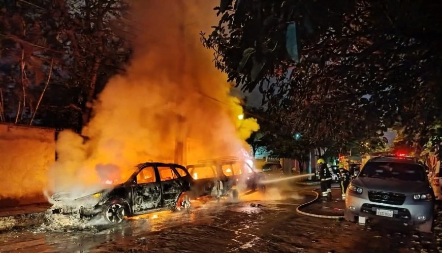 PRESIDENTE FRANCO. Dos vehículos que se encontraban estacionados frente a una vivienda se incendiaron por completo. El hecho ocurrió a media cuadra de la Ruta PY07, en el barrio Santo Tomás de esta ciudad.
