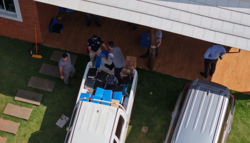 El Ministerio Público y la Policía Nacional realizaron sendos allanamientos en el distrito de Naranjal e incautaron una gran cantidad de documentaciones en el marco de la investigación abierta contra Nivaldo Ouriques Kestring, conocido como el “rey de las estafas del campo”, y de su hijo Willian Ouriques Rolín, imputados por la presunta comisión de los hechos punibles de producción de documentos no auténticos, producción mediata de documentos públicos de contenido falso y asociación criminal.