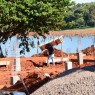 Aprovechan bajo nivel del Lago Acaray para poder retirar troncos de la orilla.