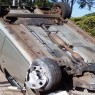 Anciano y su esposa heridos luego de volcar en estacionamiento